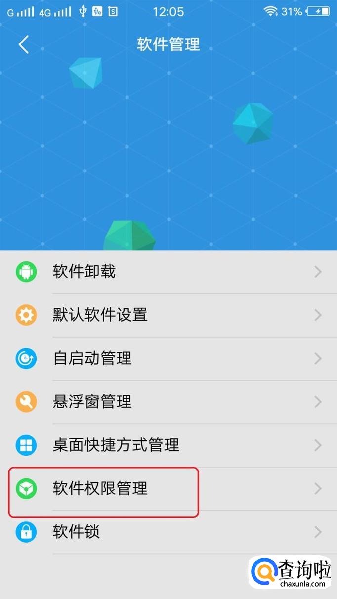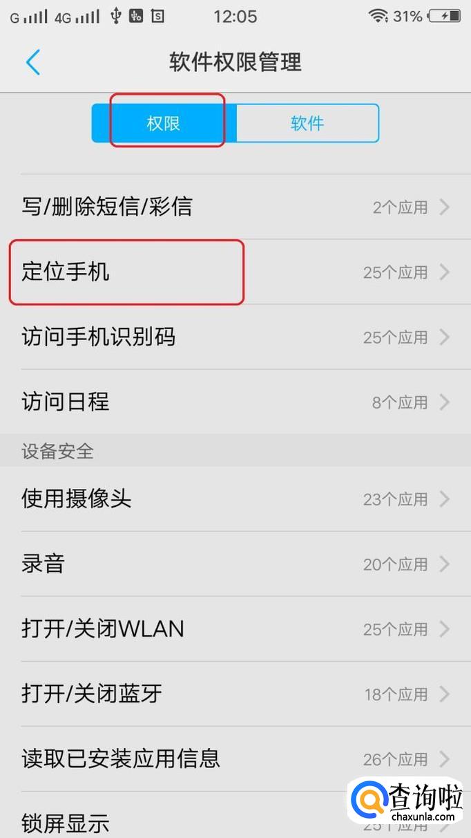 就能看到“软件权限管理”了,我们需要进入权限管理里面,找到“定位手机”权限。