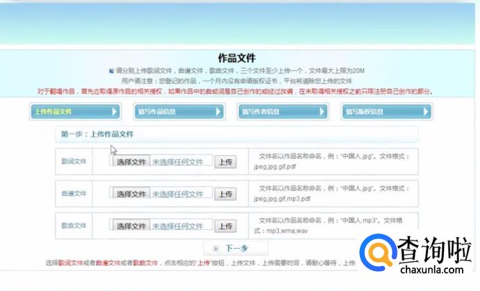 然后我们点击导航栏上的“版权注册”,根据提示填写作品资料。