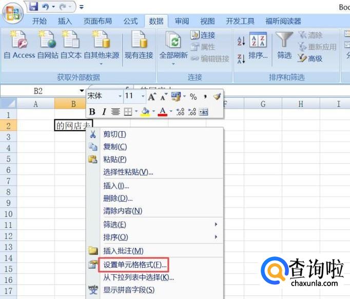 之后,我们选中这个单元格,然后右击,弹出的界面,我们点击设置单元格格式;