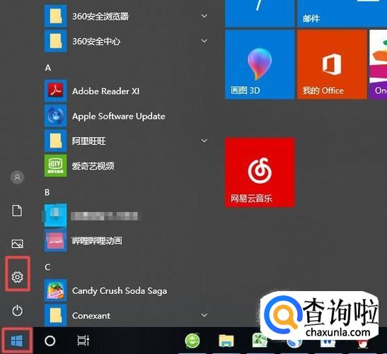 首先,我们点击左下角的开始,然后点击设置;
