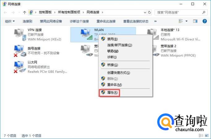 之后右击连接的网络,然后点击属性;