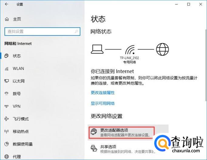 然后点击更改适配器选项;