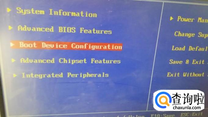 这种BIOS也比较常见,这里需要选定 “boot device configuration”(其他版本的BIOS也是找有boot字样的选项),然后回车