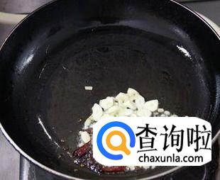 然后把准备好的青椒切丝,大蒜拍碎,然后我们就可以把锅烧热,用葱姜蒜爆香。