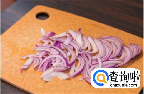 洋葱剥去外皮,切掉洋葱的两头,然后用清水洗一下,不然切的时候会很辣眼睛的。洋葱拌黄瓜切成洋葱丝是最好的了,当然你要是喜欢切成块随便你。