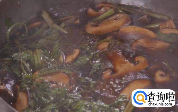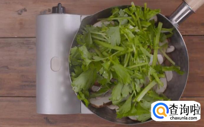 接着将口蘑、香菇、小芹菜切碎入锅。
