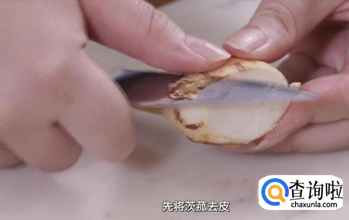 先将茨菰去皮,尖尖角保留,浸入冷水备用。