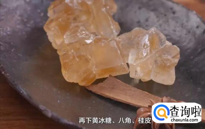 加水,再下黄冰糖、八角、桂皮。