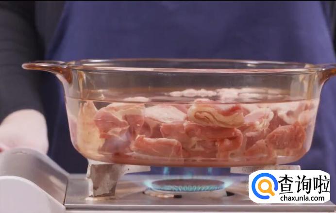 接着处理羊肉,将肉冷水入锅,沸腾后撇去浮沫,捞出洗净,沥干备用。