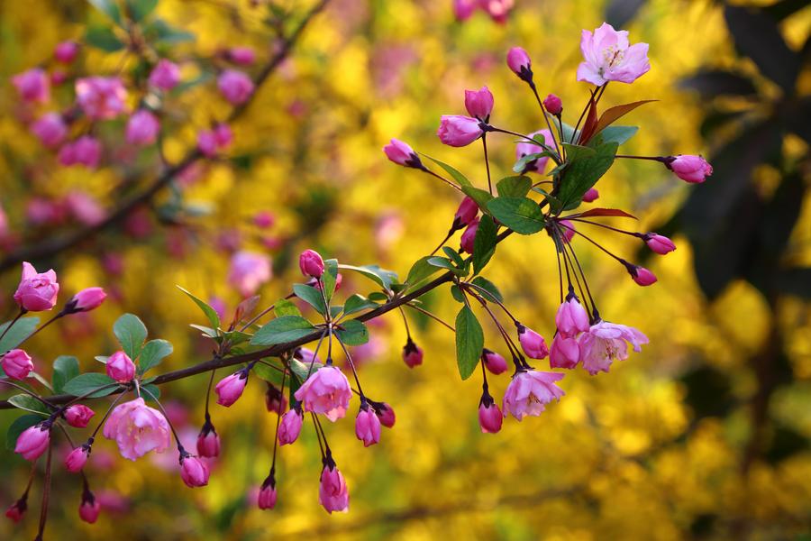 11、《江畔独步寻花》杜甫:黄四娘家花满蹊,千朵万朵压枝低。留连戏蝶时时舞,自在娇莺恰恰啼。
