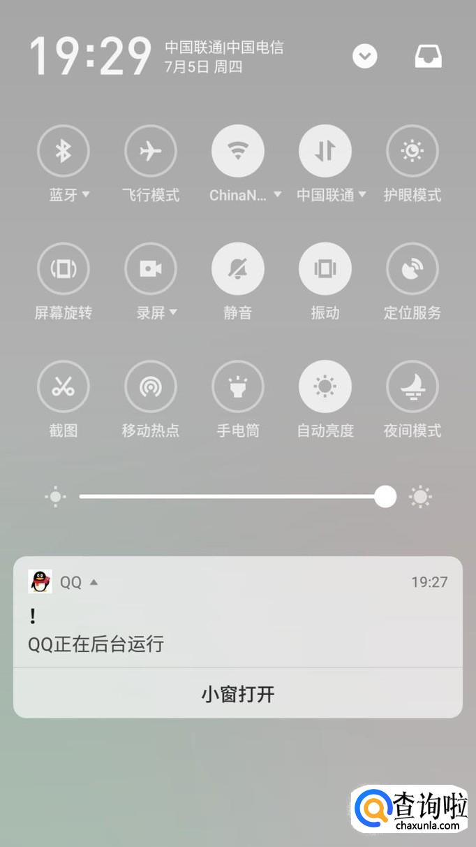 打开手机,验证身份进入手机主界面,下滑屏幕呼出通知栏。