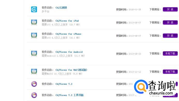 在caj阅读软件的官方下载列表中,有各个版本的CAJViewer下载选项,以及所对应的运行平台,根据对应的运行平台进行选择即可。