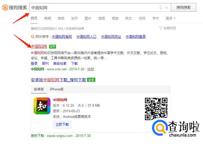 打开浏览器,在搜索栏中输入【中国知网】,点击搜索,选择【中国知网】。