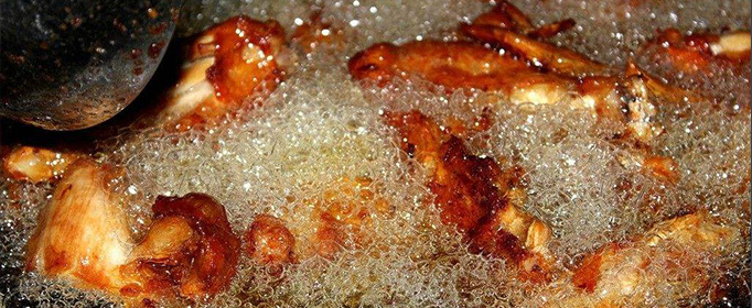 还有一个非常重要的原因,就是水比油重,所以水滴落到热油锅里后,立刻向锅底下沉。由于锅里的热油温度早已超过沸水温度,会使沉到锅底的水滴温度迅速升高沸腾变成水蒸气,体积膨胀1000多倍。水蒸气比油轻,所以要从锅底上升,通过油层表面散发出去。在上升过程中,水蒸气气泡不断推开包围住它的热油,直到突破油层表面后爆裂,发出噼里啪啦的响声。气泡爆裂时,将油层表面的油一起带了出去,这就是四溅的油花。而将开水滴入热油中时,不会迅速下沉,只在热油表层汽化,爆炸声就会小很多。
