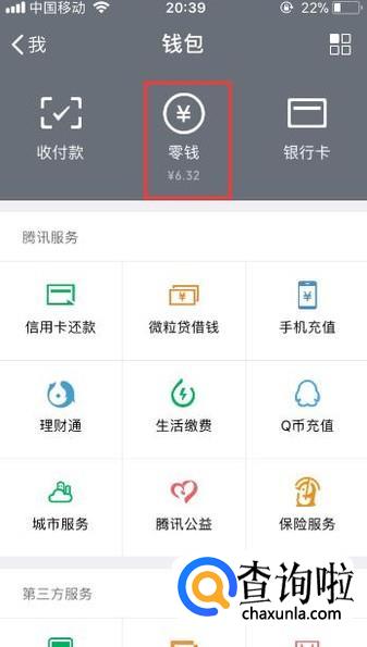 进入到【钱包】页面后,接着再点击【零钱】按键。