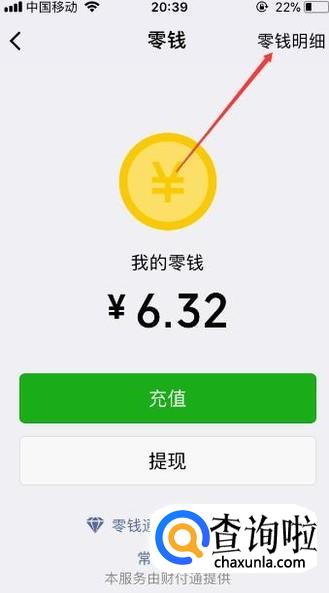 进入到【零钱】页面后,之后再点击右上角的【零钱明细】按键。