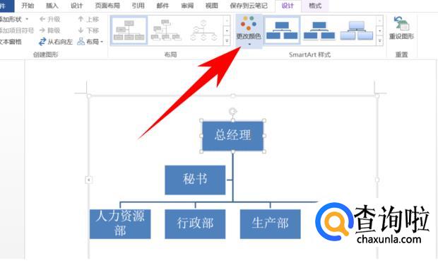 点击工具栏“设计”>“更改颜色”,选择合适的颜色即可。如下图所示。