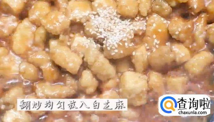 另起一锅,倒入酱汁加热后,放入煎好的鸡胸肉翻炒均匀后,放入白芝麻。