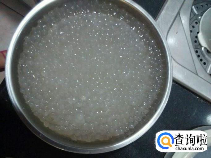 首先我们需要把西米煮好,先用清水浸泡一段时间,然后放入锅里面煮熟,一般情况下煮到透明就可以了。