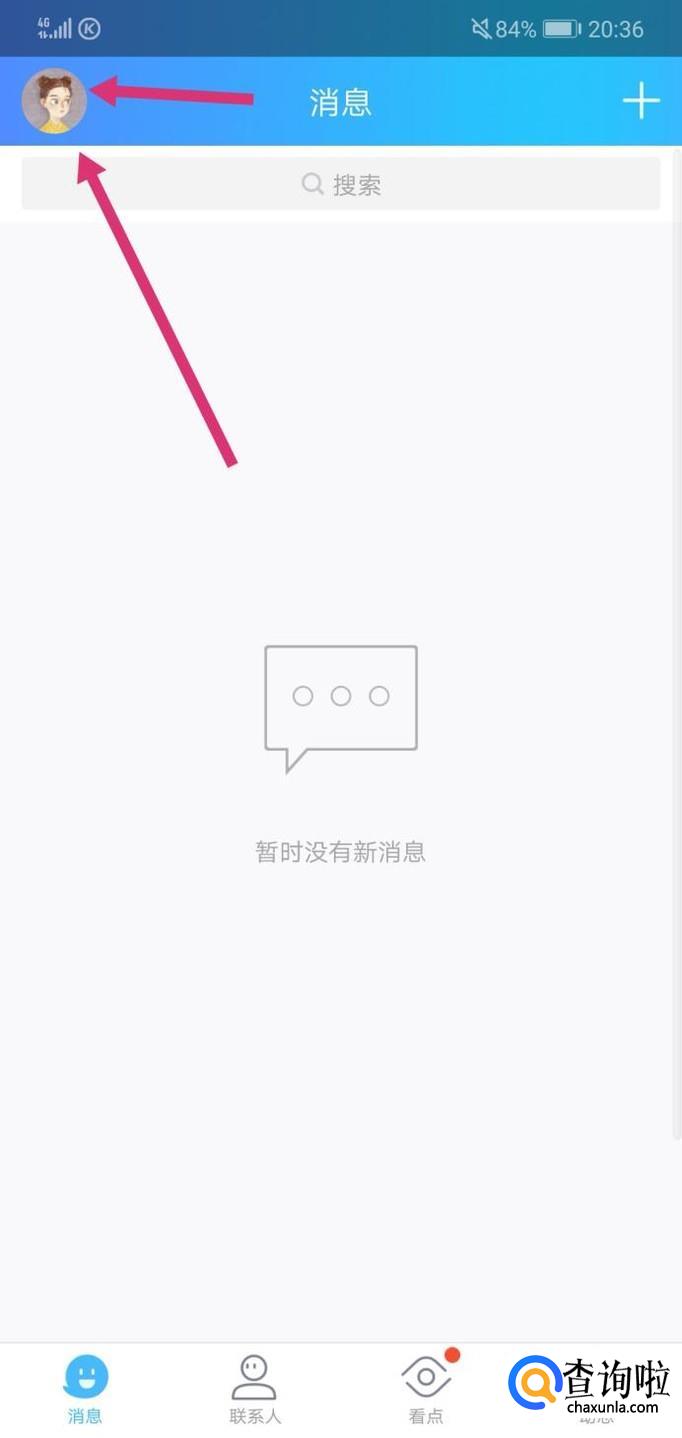 然后,点击进入手机QQ后,你需要点击一下你的QQ头像,或者你也可以向右滑一下你的手机屏幕,这时会出现一个界面。