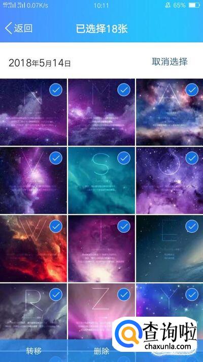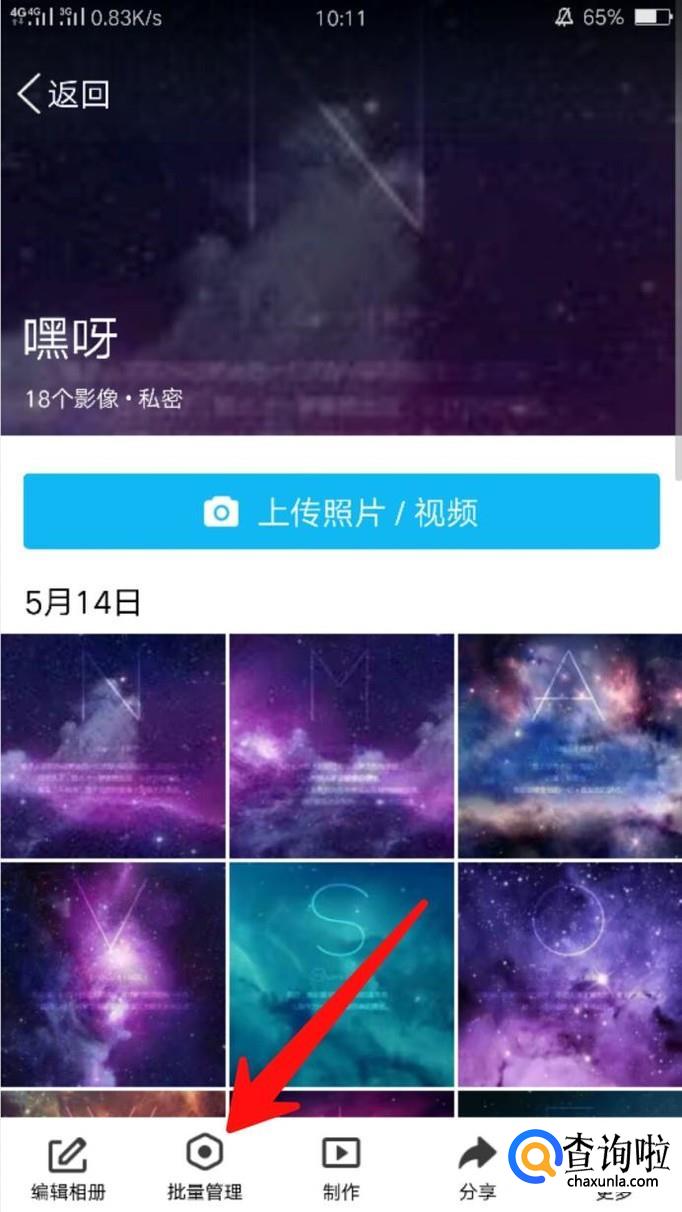 转载成功之后,点击进入自己的相册,找到转账的图片所在的相册,接着点击“批量管理”。