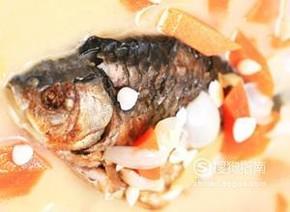 木瓜炖鱼。把木瓜洗净切块放进水里煮,先用大火煮,再用小火炖半小时,然后把洗净的鱼放进去,煮20分钟即可。