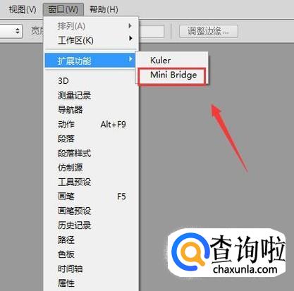 点击扩展功能选项在其子级菜单哪里找到mini bridge选项,如图所示: