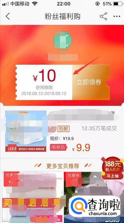 接着就进入了一个领劵的页面,点击领取就会自动跳进商品详情页面。