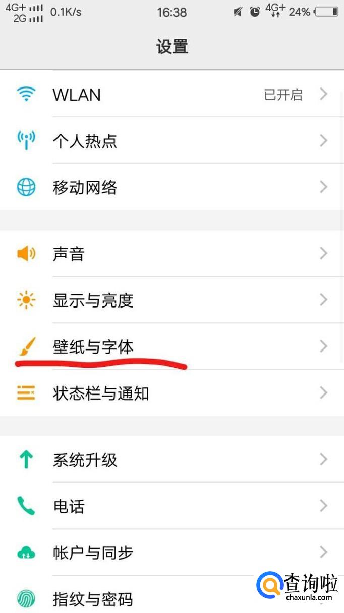 然后,我们手动找到“壁纸与字体”,并且点击它。