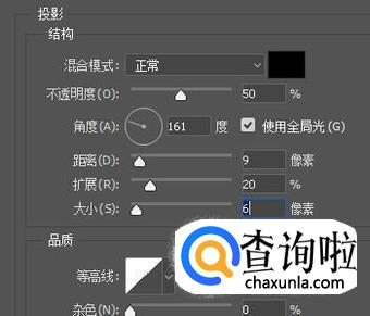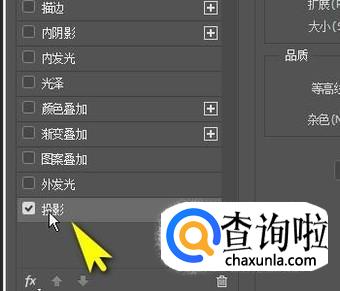 在面板左侧这里,勾选“投影”;并且点击一下“投影”;右边弹出投影设置选项