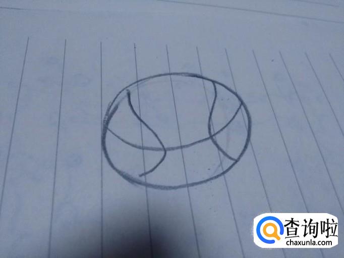在垂直方向的左右两边画一条弯曲的弧线,增加球的立体感。