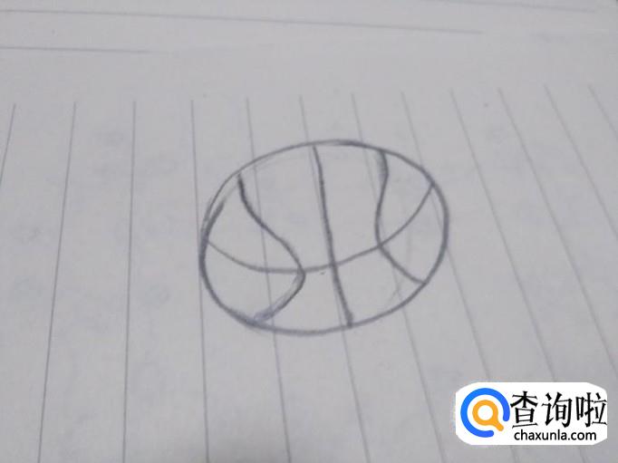 最后在正中间的位置画一条垂线,这样一个篮球的简笔画就完成啦。