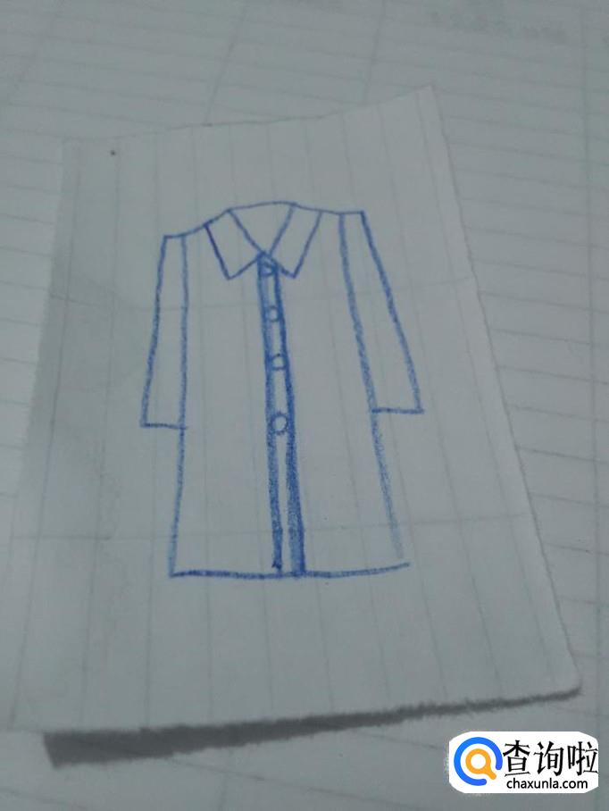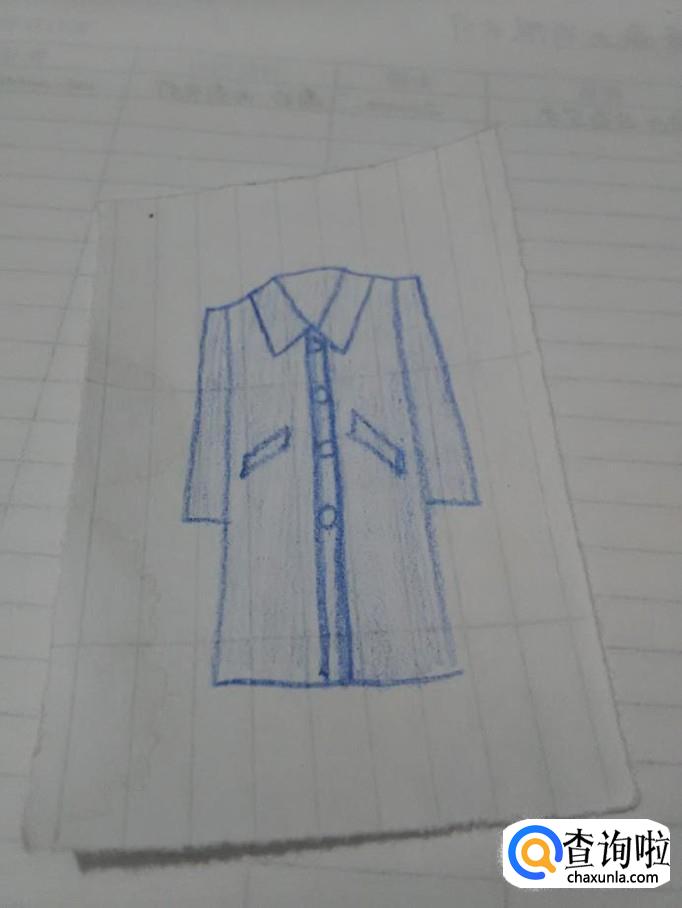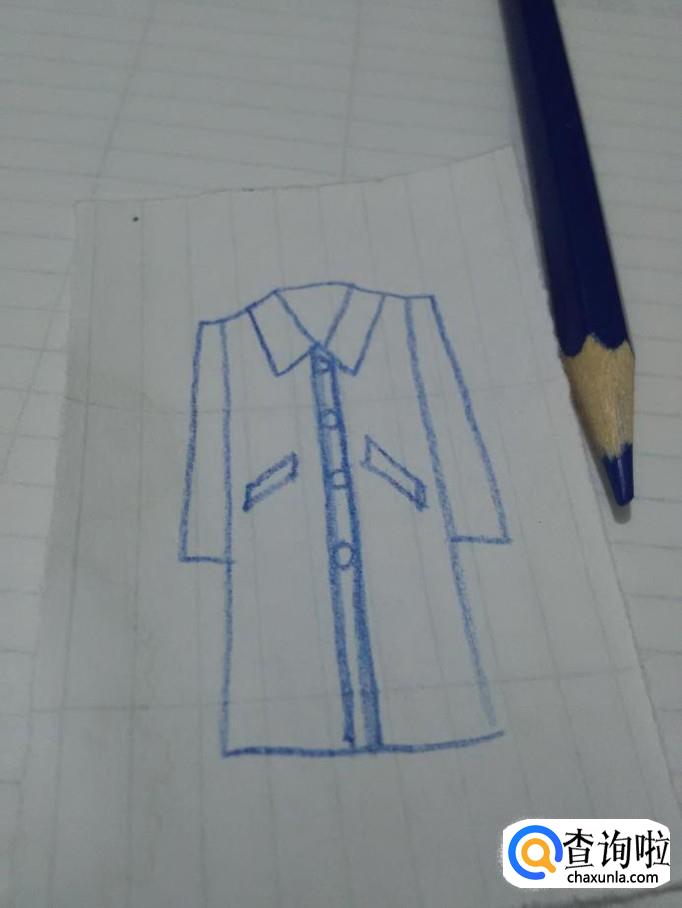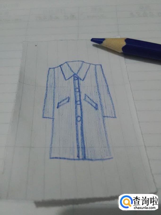 最后用蓝笔将大衣涂上颜色,大衣就画完了。