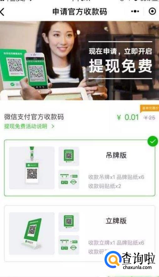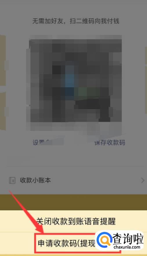 选择【申请收款码(提现免费)】,如下图所示;