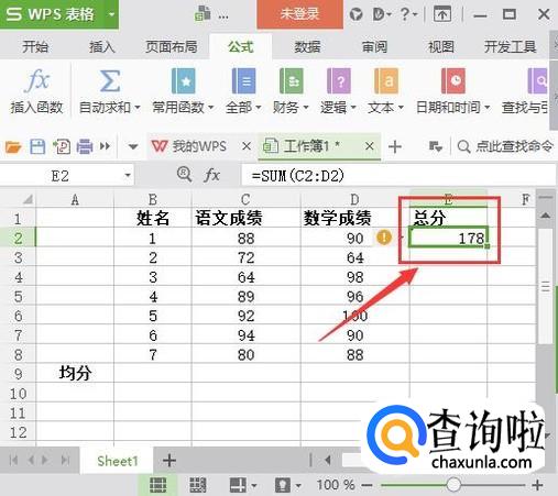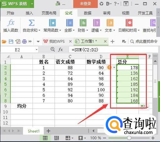 将鼠标移动至第一个总分右下角出现黑体+号时下拉。所有总分就求出来了