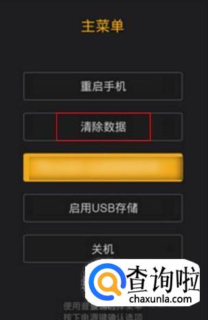 进入手机的Recover界面,选择清楚数据,进入下一界面,如图所示。