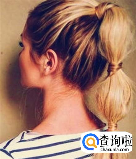 将马尾辫用皮筋扎起来,然后拿出一缕头发缠绕一下皮筋,将皮筋包起来,这样看起来更有高级感哦。