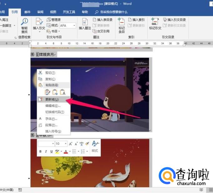 如果想删除图片或者增加图片的时候,Ctrl+A全选,然后在编号上单击鼠标右键,选择“更新域”命令这些编号即会自动更新了。