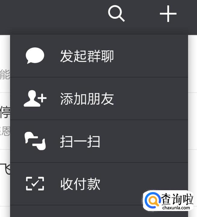 打开老板的微信,点击右上角的+号,在弹出的菜单里选“收付款”。