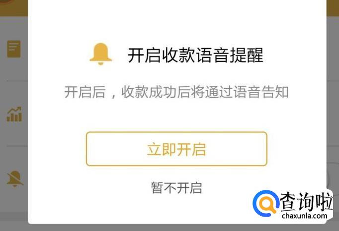 如果老板的微信没有开启收款语音提醒,就会弹出询问对话框,点“立即开启”即可。