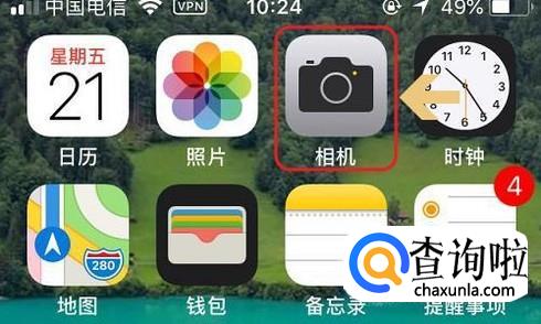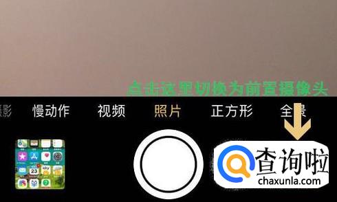 我们先来看看苹果手如何设置定时拍照,如图一首先打开手机桌面上的相机图标,进入到相机拍摄界面以后,由于基本上只有自拍才需要设置定时功能,所以点击右下角切换为前置摄像头;