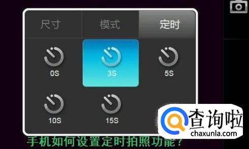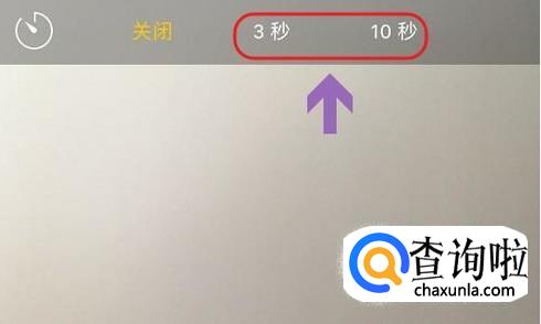 然后我们会在拍摄页面的最上方看到一个类似于时间的图标,点击以后即可显示时间,如图分别是3秒和10秒,这个就是定时拍照的时间设置了;目前系统只支持这两个时长;