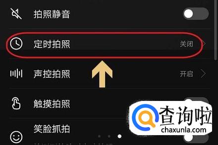 然后我们将左滑动页面,打开“设置”窗口,在该窗口列表里就能够看到“定时拍照”选项了,不过系统默认的是关闭状态;