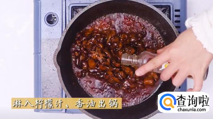 最后,把准备好的柠檬汁、香油淋到里脊肉上,就可以出锅了。