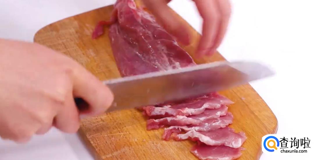 首先,将准备好的里脊肉洗干净,然后切成块,装入碗中。