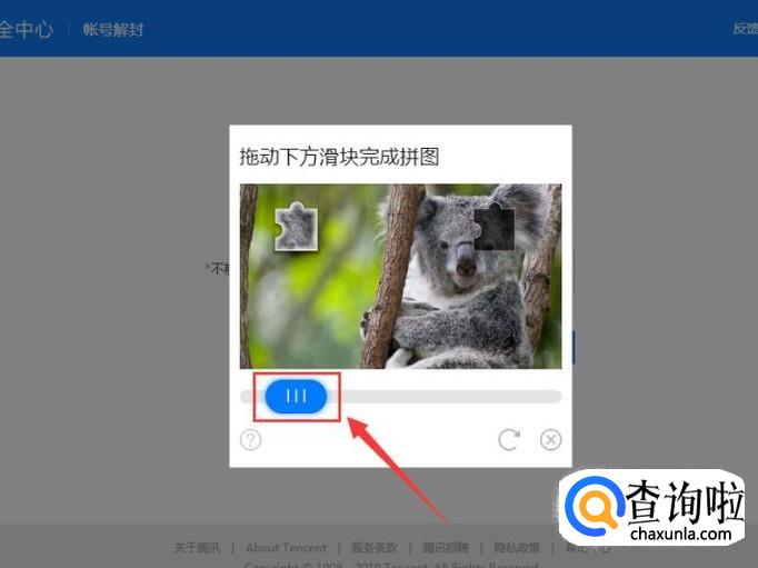 在出现的弹窗内拖动滑块完成拼图,如图所示。