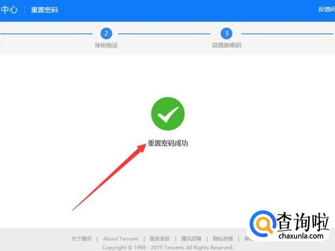点击之后,进入下一页面可看到重置密码成功,即可解冻QQ账号。