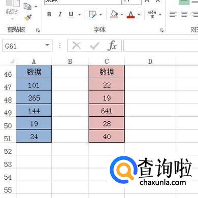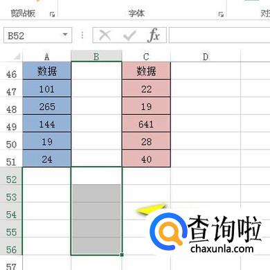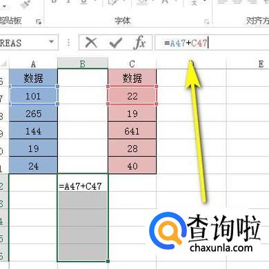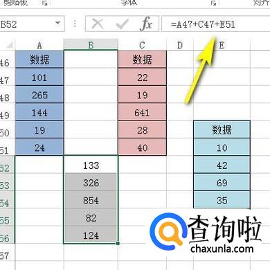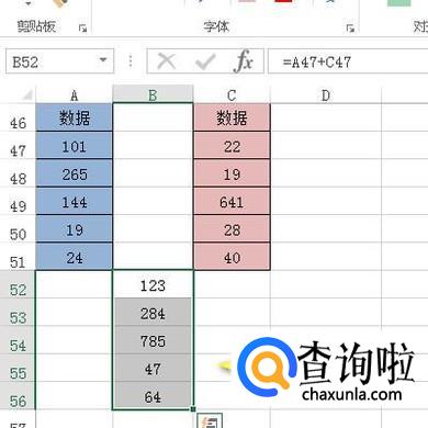 比如,下图中的两表格;接下来,把A47:A51的数据与C47:C51的数据相加。所得和放在B52:B56