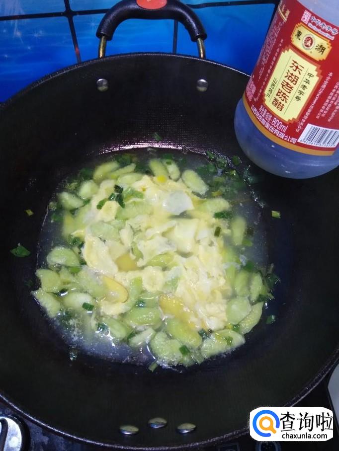 丝瓜适量,鸡蛋适量,枸杞子适量,盐适量,鸡精适量,葱适量,姜适量,陈醋适量。