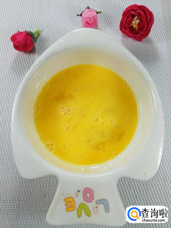 碗中打入一个鸡蛋,加入适量盐打散。